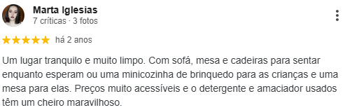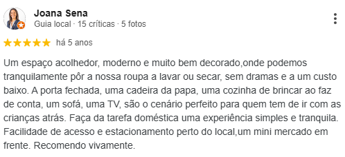 Na nossa lavandaria self-service, pode lavar e secar as suas roupas em máquinas modernas, grandes e eficientes, no horário que lhe for mais conveniente, todos os dias do ano, das 6h00 às 23h30. Disfrute de um snack ou bebida quente enquanto aguarda confortavelmente no sofá,navegando no wifi gratuito. Temos um espaço para que as crianças possam brincar enquanto os adultos aguardam pelas suas roupas.